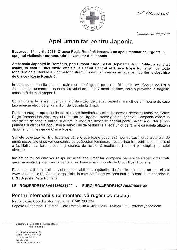 APEL UMANITAR PENTRU JAPONIA