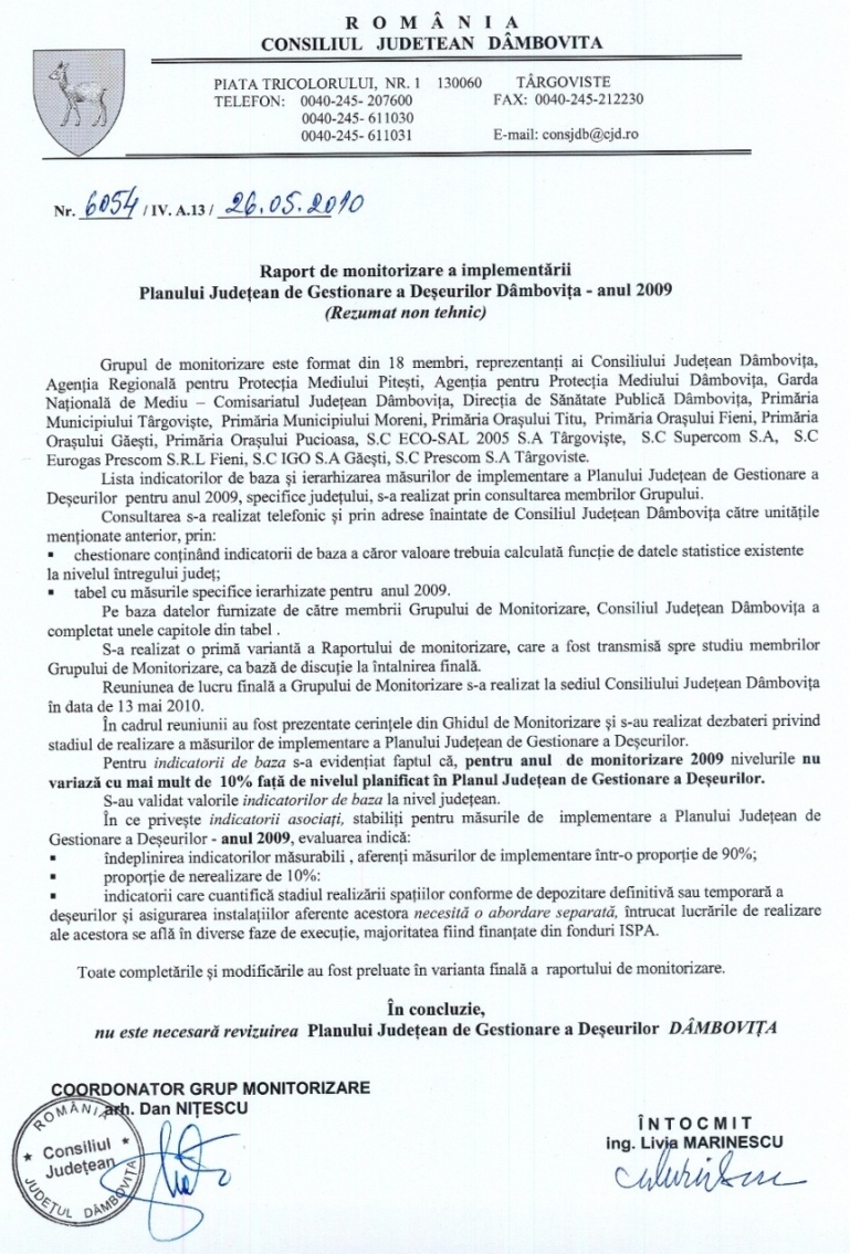 Planul Judetean de Gestionare a Deseurilor-raport 2009