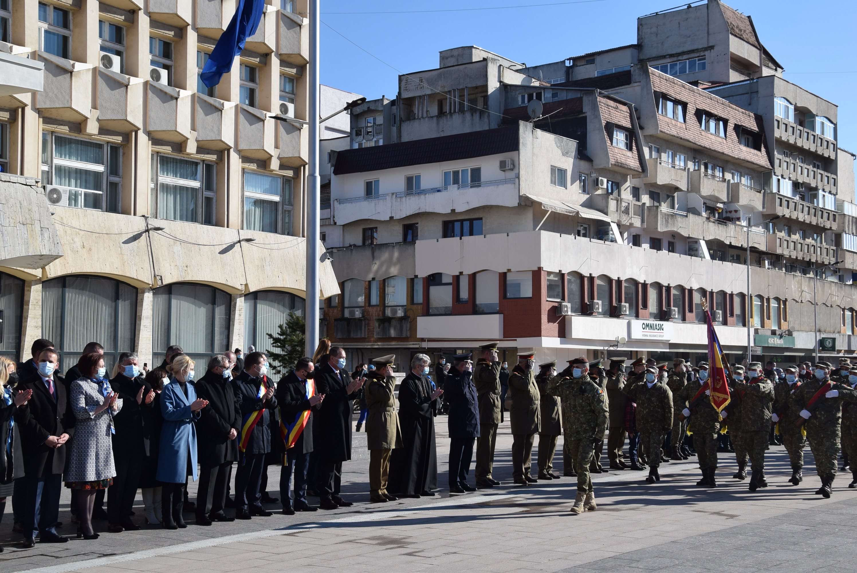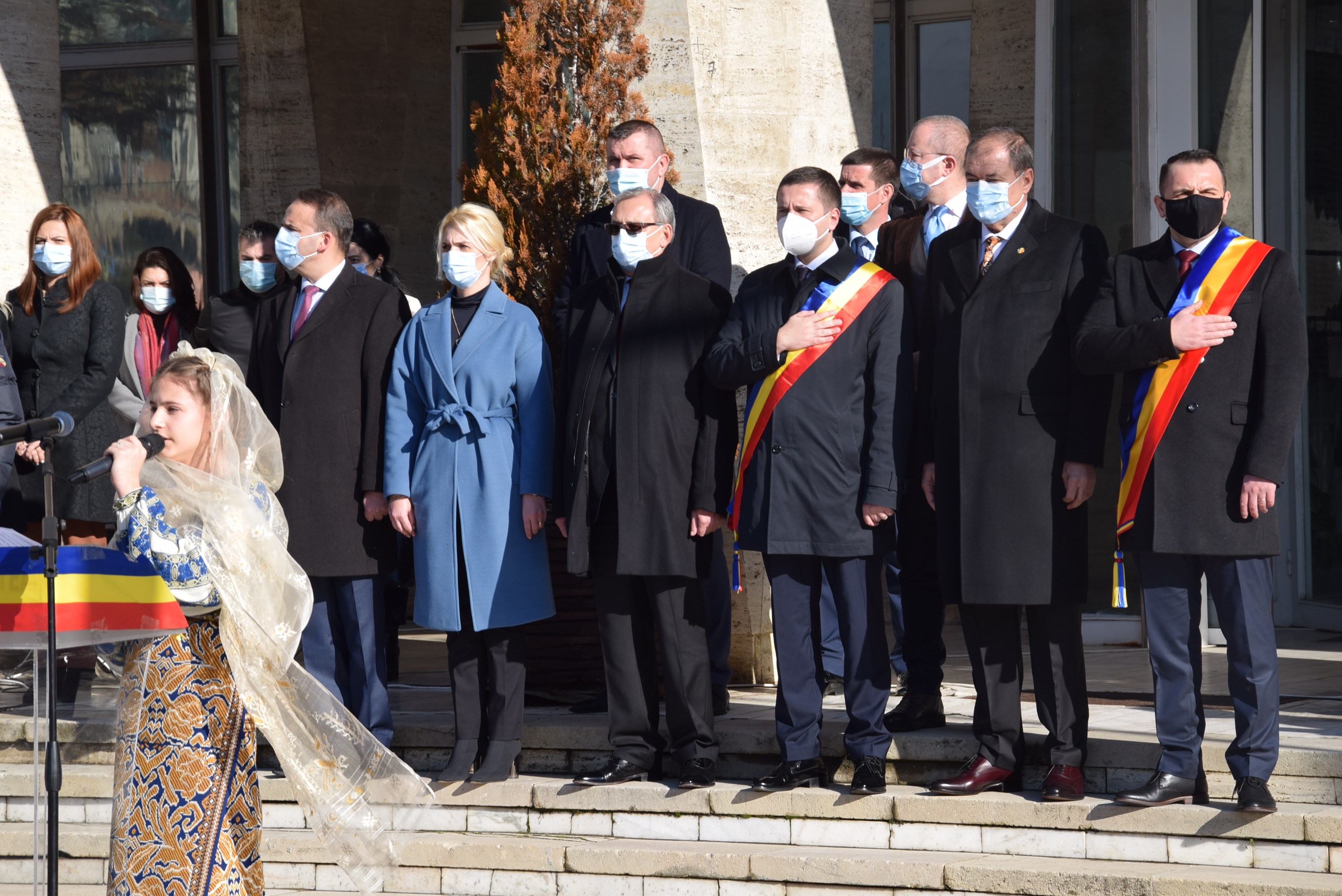 Ceremonialul dedicat Micii Uniri a debutat cu intonarea imnului de stat al României, urmată de mesajele autorităților locale și județene.