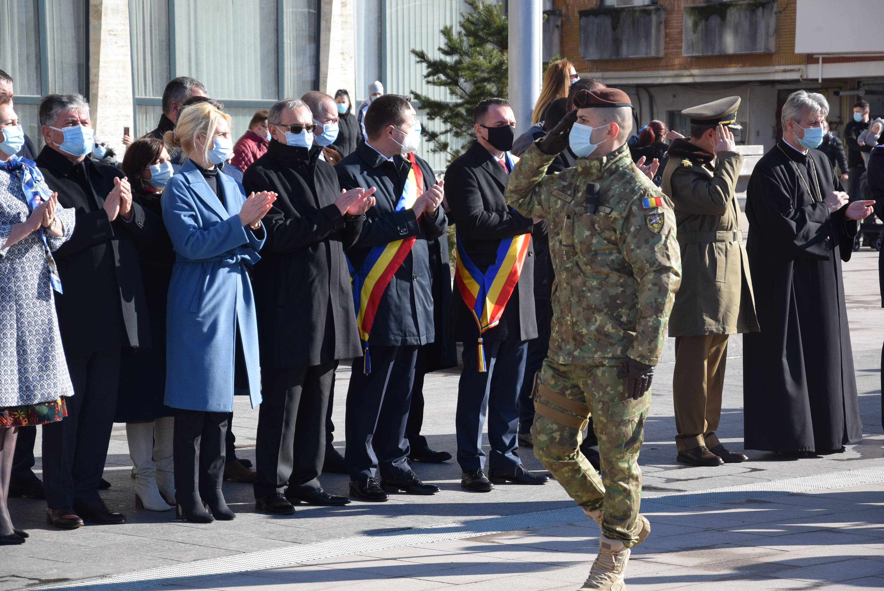 Evenimentul dedicat Micii Uniri s-a încheiat cu defilarea gărzii de onoare și interpretarea horei unirii.