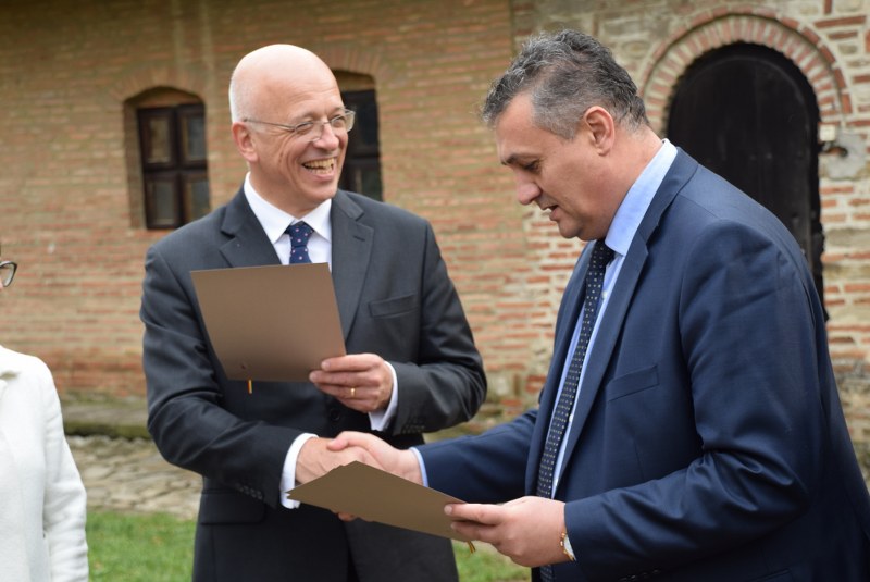 Astăzi, 10 noiembrie a.c., președintele Consiliului Județean Dâmbovița, Alexandru Oprea, alături de vicepreședintele Alin Manole, parlamentari dâmbovițeni și reprezentanți ai autorităților și instituțiilor locale, l-a primit, la Consiliul Județean Dâmbovița, pe ambasadorul Republicii Federale Germania la București, E.S. Cord Meier-Klodt, aflat în vizită oficială în județul Dâmbovița.