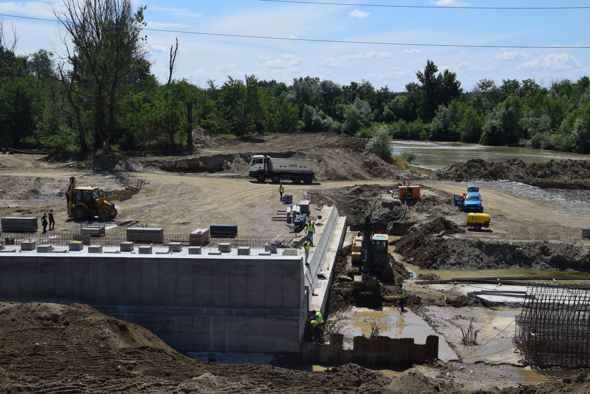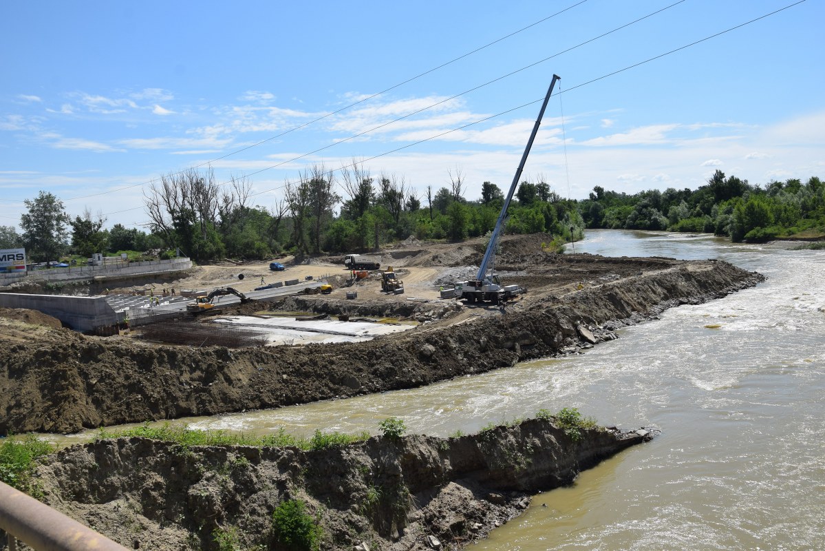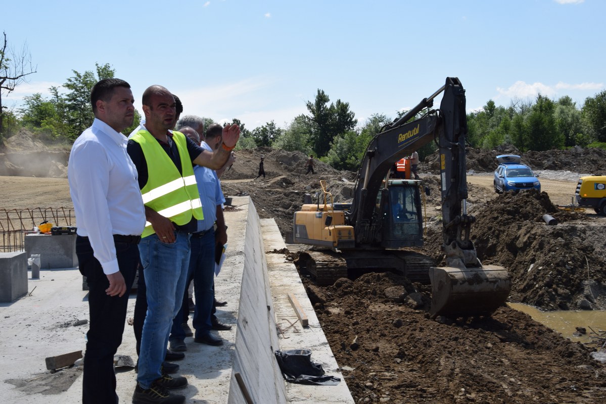 Totodată, printr-o mobilizare corespunzătoare de personal și utilaje, sunt în curs de finalizare lucrările la pragul din zona centrală a albiei, urmând ca în scurt timp, râul Argeș să fie deviat pe cursul normal pentru a se permite începerea și finalizarea lucrărilor pe malul drept.