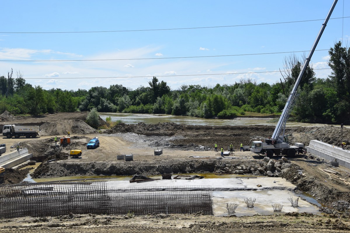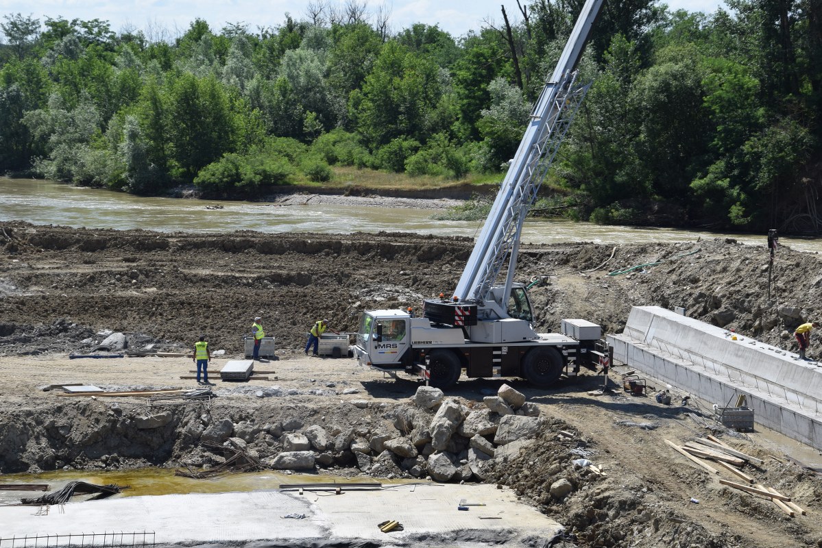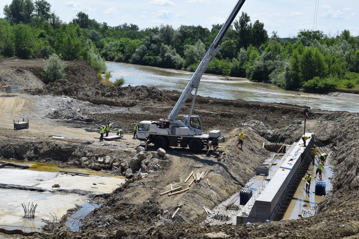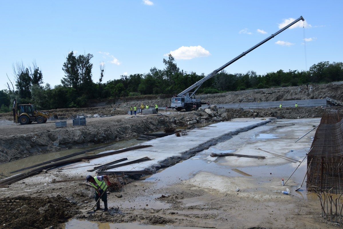 Totodată, printr-o mobilizare corespunzătoare de personal și utilaje, sunt în curs de finalizare lucrările la pragul din zona centrală a albiei, urmând ca în scurt timp, râul Argeș să fie deviat pe cursul normal pentru a se permite începerea și finalizarea lucrărilor pe malul drept.