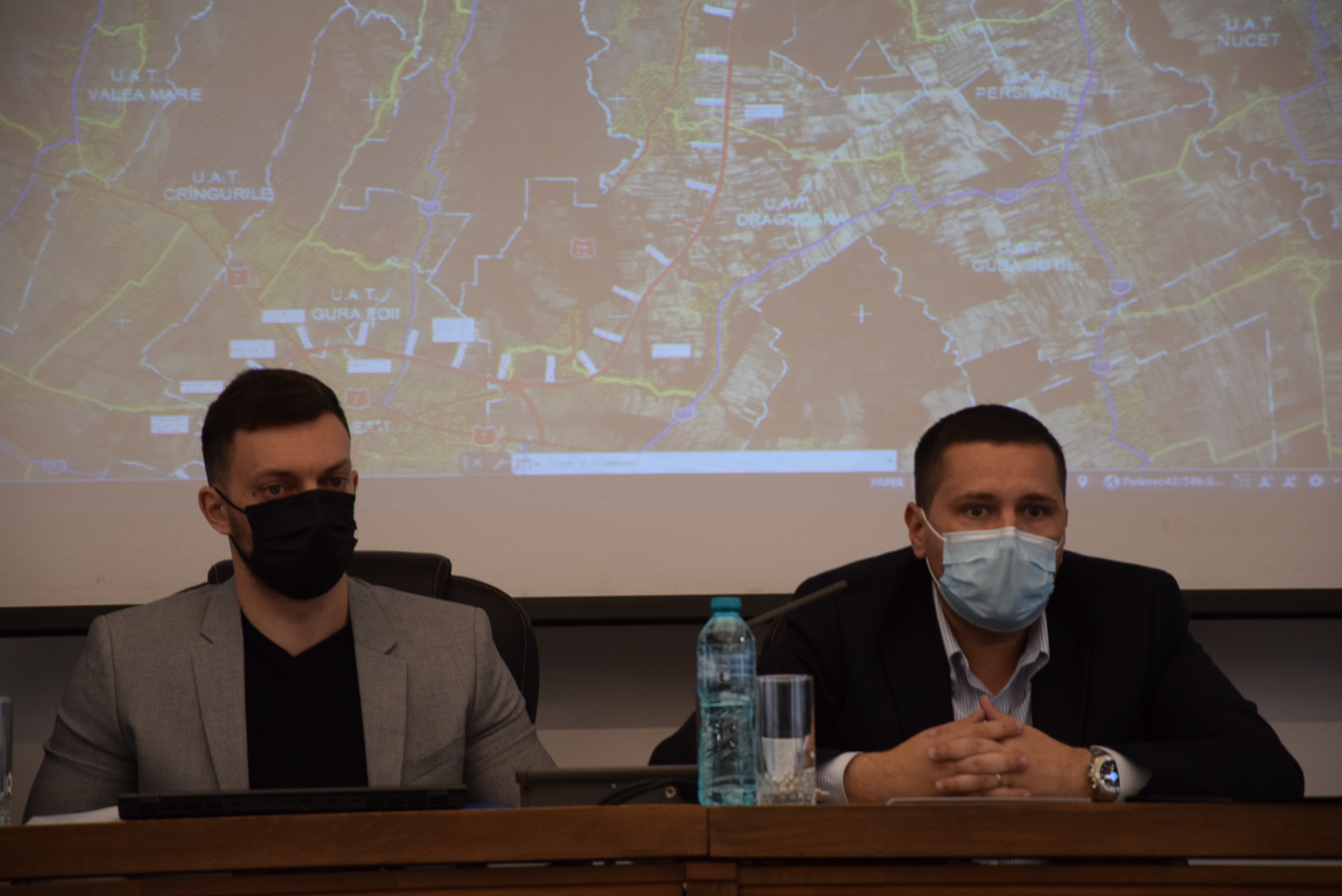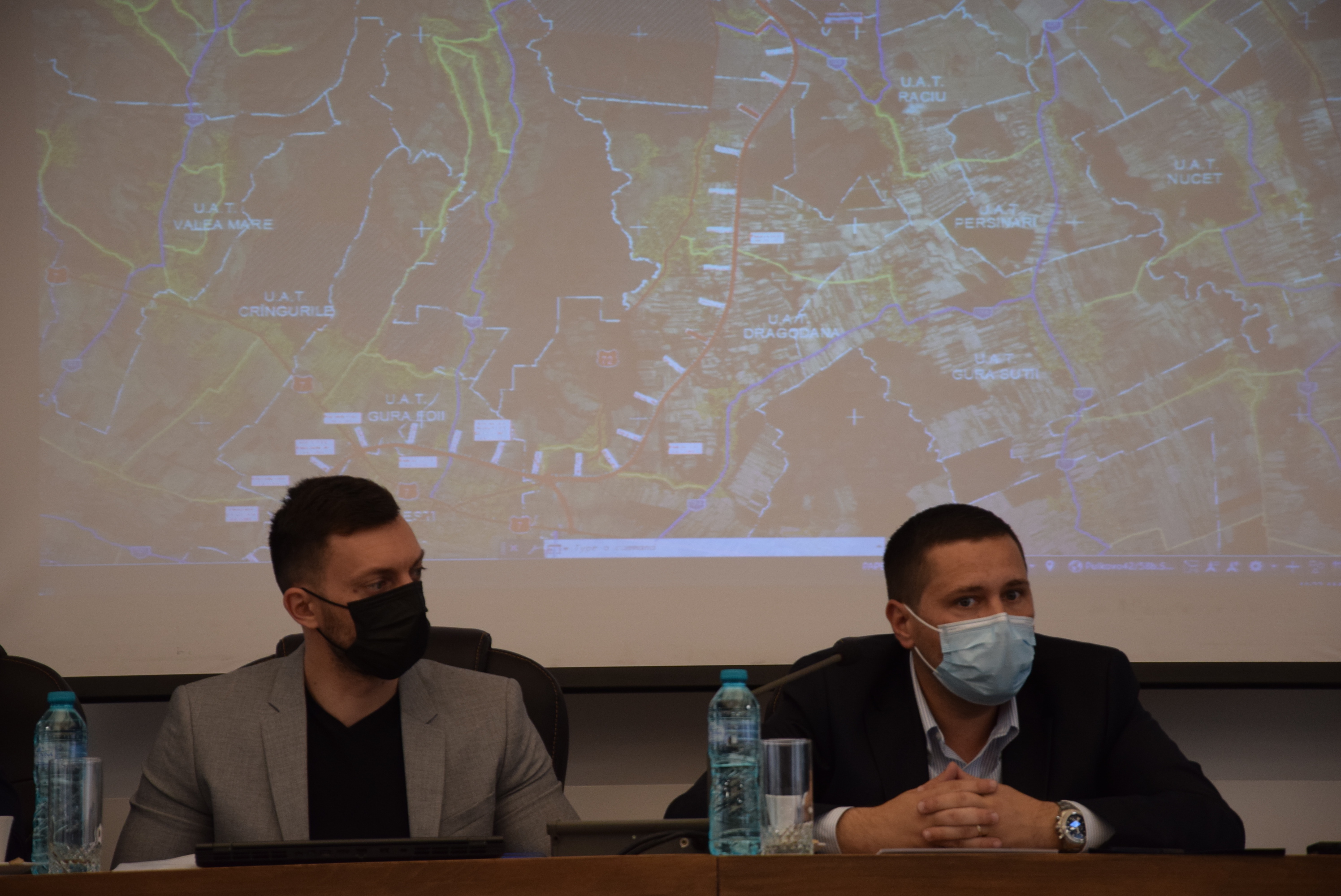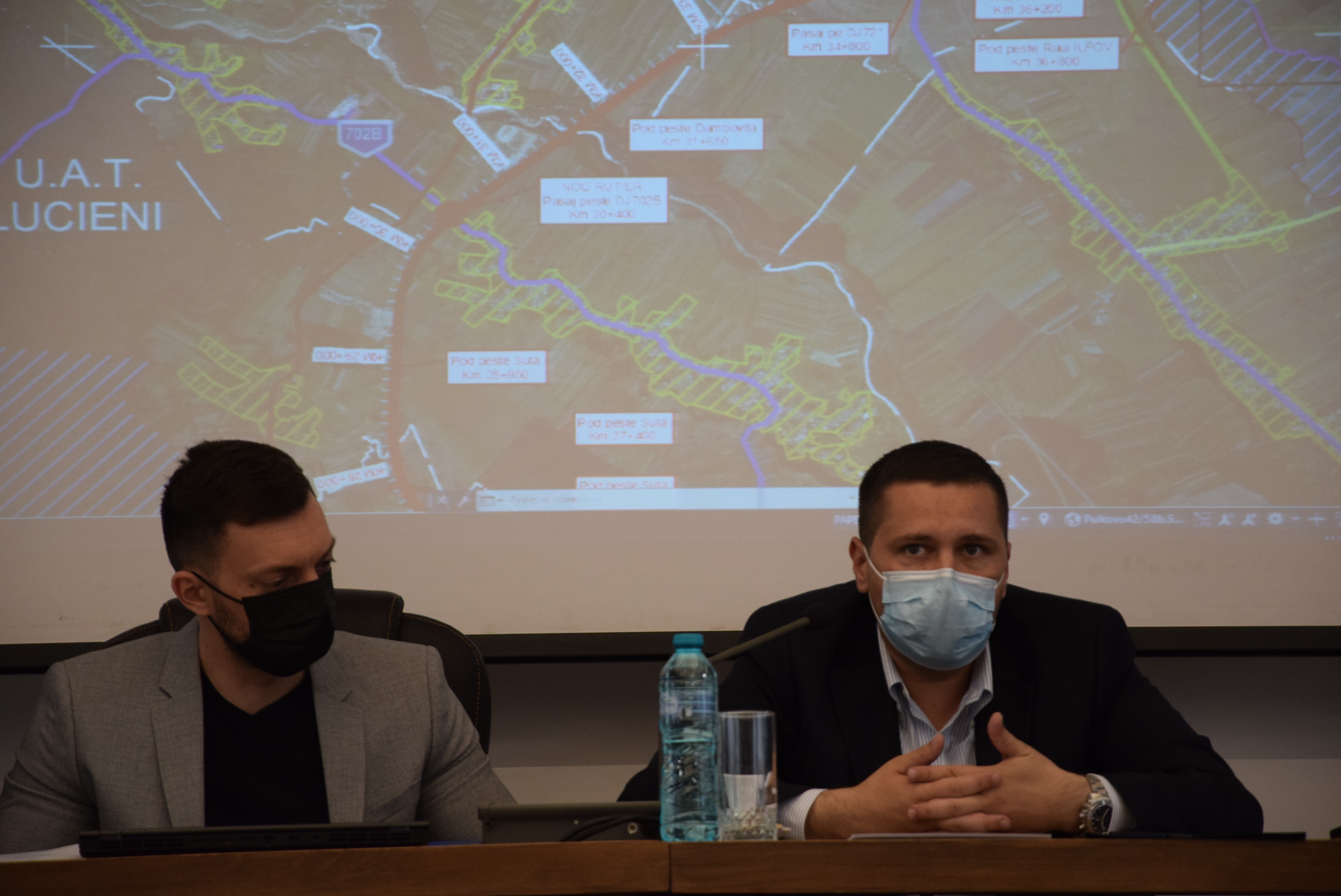 Președintele CJD, Corneliu Ștefan: „Astăzi am inițiat această întâlnire, după ce, săptămâna trecută, am participat cu colegii mei de la Consiliul Județean Dâmbovița la o întâlnire la Compania Națională de Administrare a Infrastructurii Rutiere SA, unde am depus documentația pentru Inelul 2 de centură al municipiului Târgoviște. Atunci doamna Mariana Ioniță a propus să avem o discuție la Târgoviște, în legătură cu Drumul expres Găești - Ploiești, împreună cu dumneavoastră, primarii localităților pe unde trece acest drum. În primul rând, acest drum expres face legătura între Oltenia și Moldova. Este cel mai important drum expres, este un drum nou, de la Găești până la Ploiești. Cea mai mare parte a acestui drum trece prin județul Dâmbovița și doar 25% este pe raza județului Prahova. A fost condiția Ministerului Transporturilor, am avut o discuție și cu domnul ministru Drulă, în urmă cu 4 luni, când am inițiat proiectul de hotărâre al consiliului județean. Din acest drum expres va pleca Inelul 2 de centură al municipiului Târgoviște, care pornește din comuna Ulmi, la Viișoara, străbate municipiul Târgoviște, Dragomirești, Șotânga, Doicești și se bifurcă direct din DN 71, la ieșirea din comuna Aninoasa și intrarea în comuna Doicești. Vă rog, pentru că sunt ultimele amendamente pe care dumneavoastră, reprezentanții unităților administrativ-teritoriale le aveți pe marginea acestui proiect, să ridicați toate problemele și către reprezentantul Ministerului Transporturilor, dar și către proiectant. Trebuie să luăm o decizie pentru porțiunile care sunt străbătute pe raza localităților dumneavoastră.”