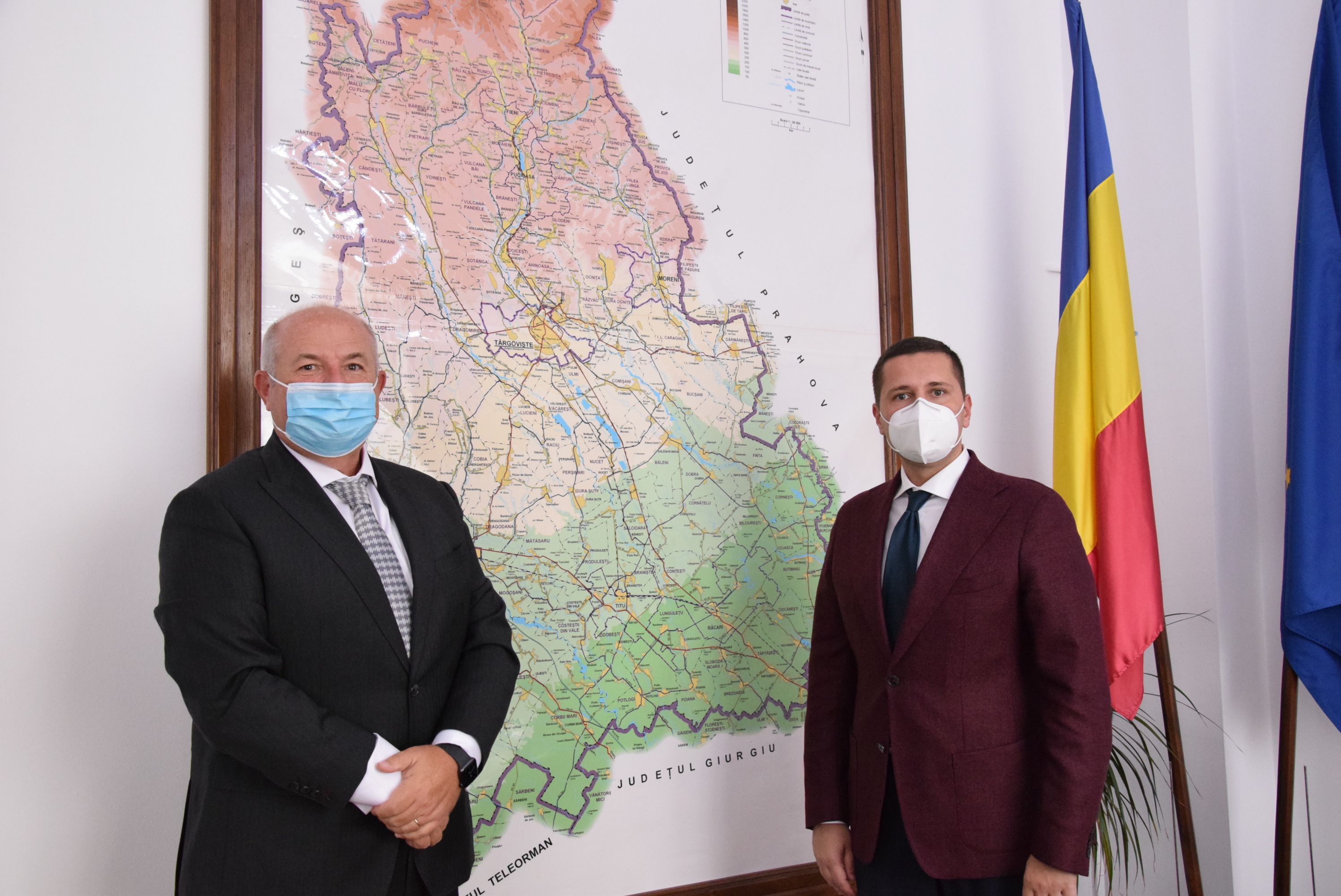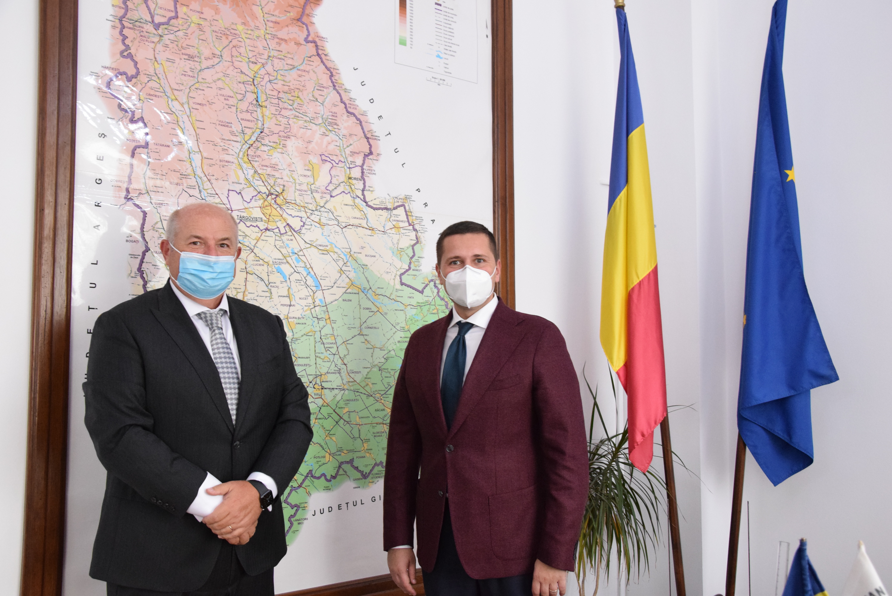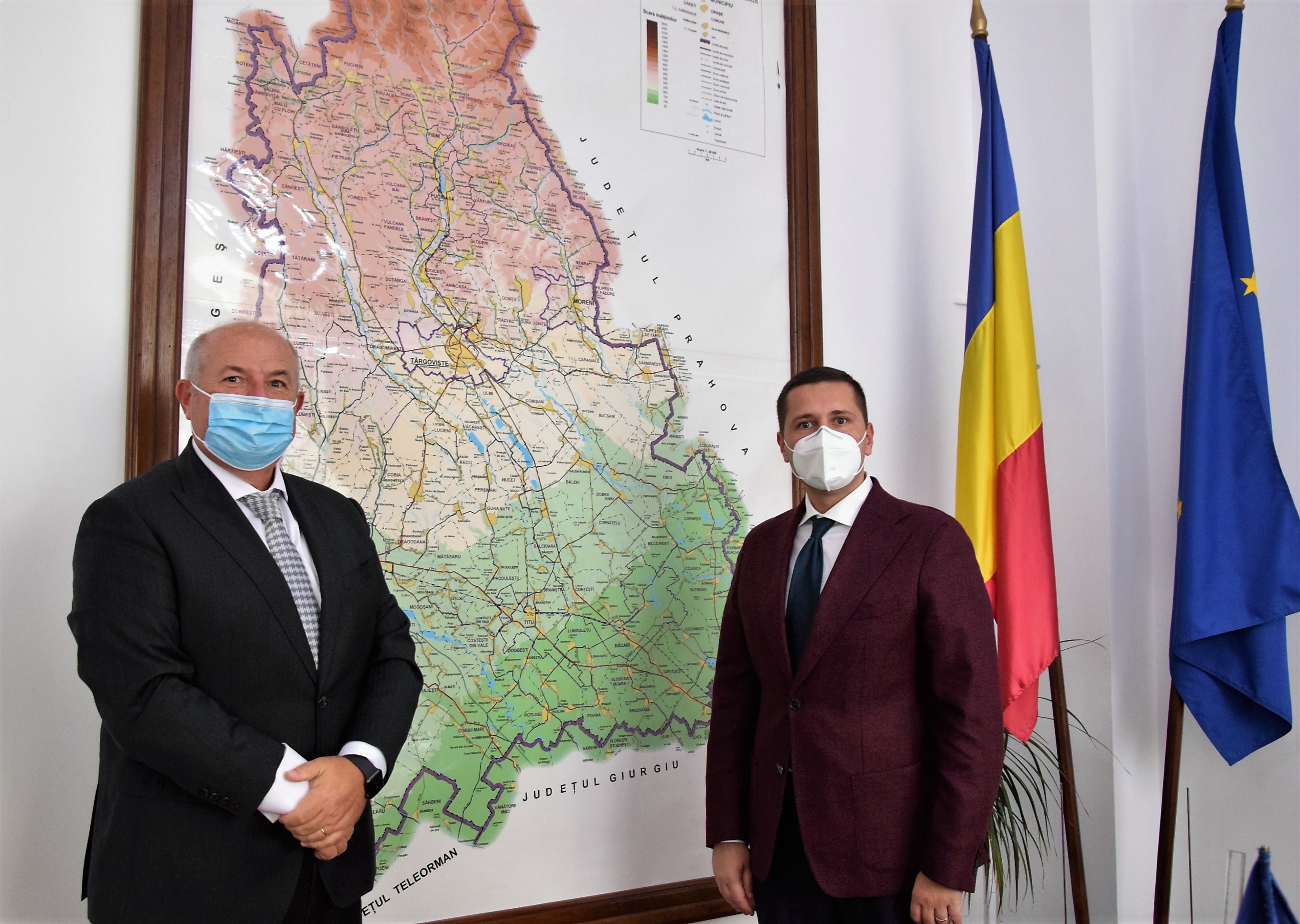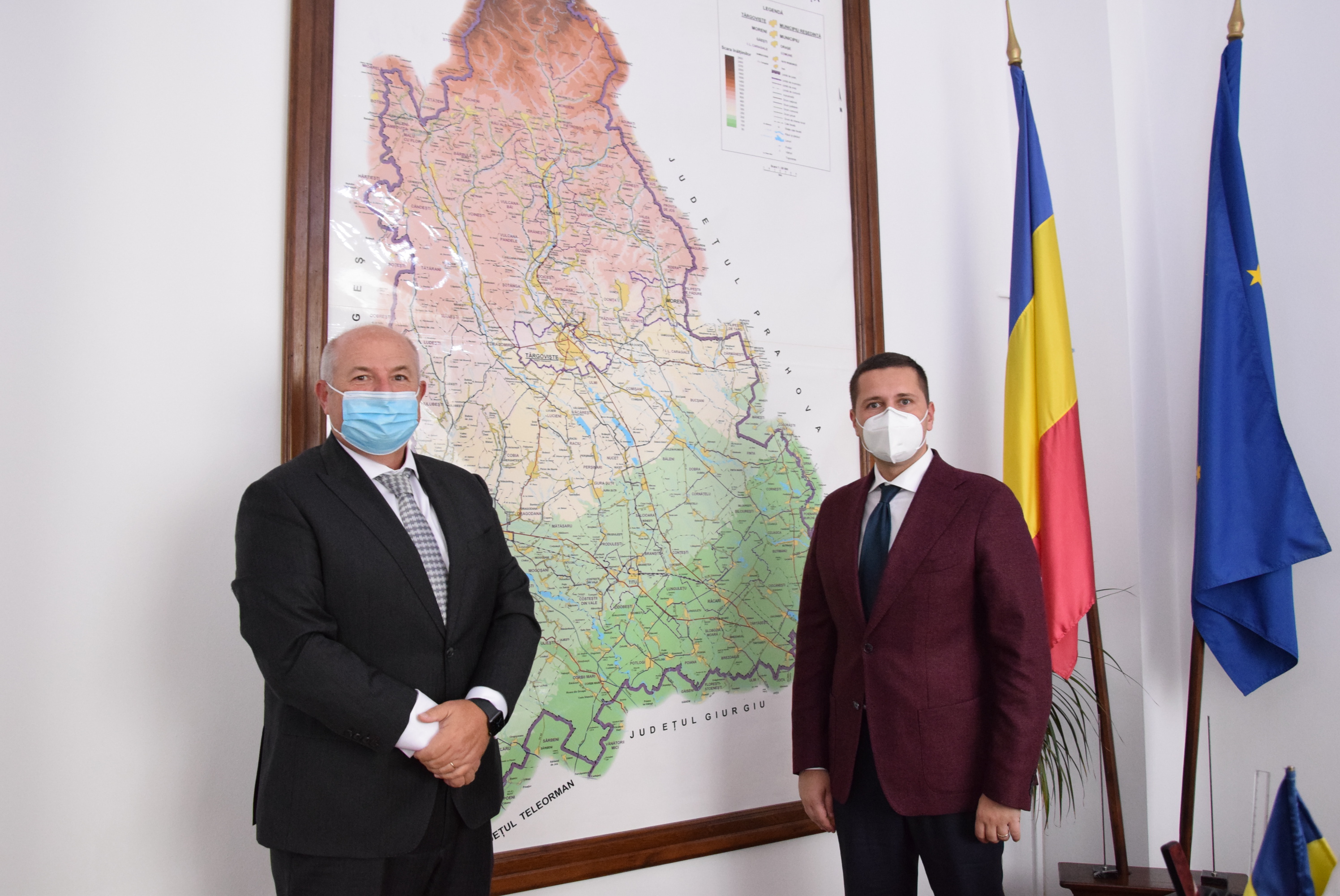 Președintele Consiliului Județean Dâmbovița, Corneliu Ștefan, s-a întâlnit astăzi, 16 noiembrie 2020, la sediul forului administrativ județean, cu președintele Camerei de Comerț, Industrie și Agricultură Dâmbovița, Valentin Calcan, pentru a stabili o strategie comună de dezvoltare a mediului de afaceri dâmbovițean, dar și a liniilor de acțiune pentru susținerea viitoarei stațiuni de interes național Padina - Peștera.