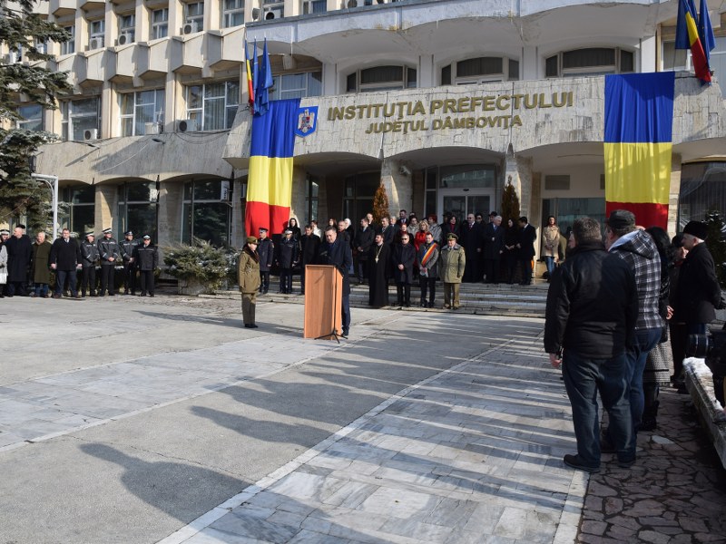 Festivitățile au debutat cu intonarea imnului de stat al României, urmată de alocuțiuni ale autorităților publice locale și un moment muzical susținut de Orchestra Populară Chindia a Centrului Județean de Cultură Dâmbovița și Fanfara Garnizoanei Târgoviște.