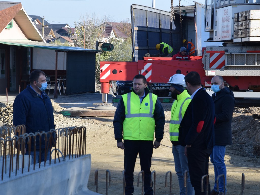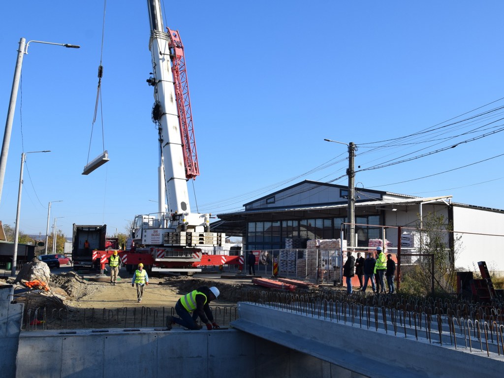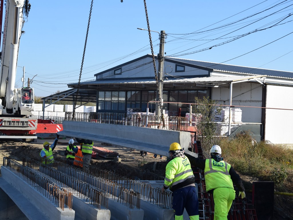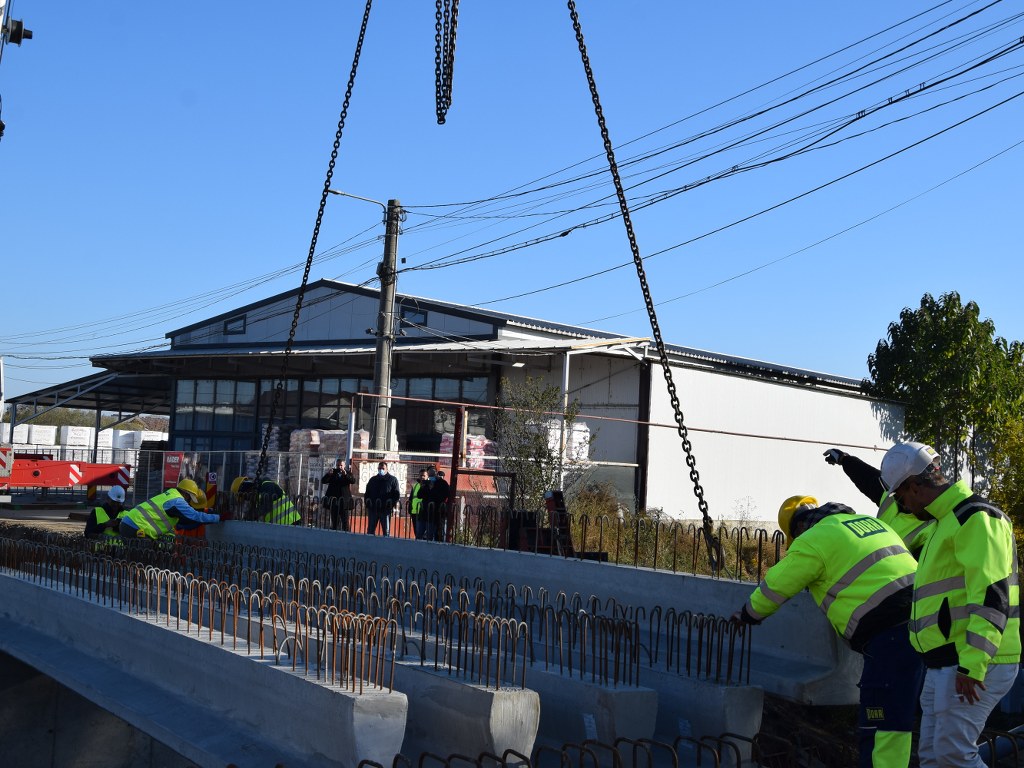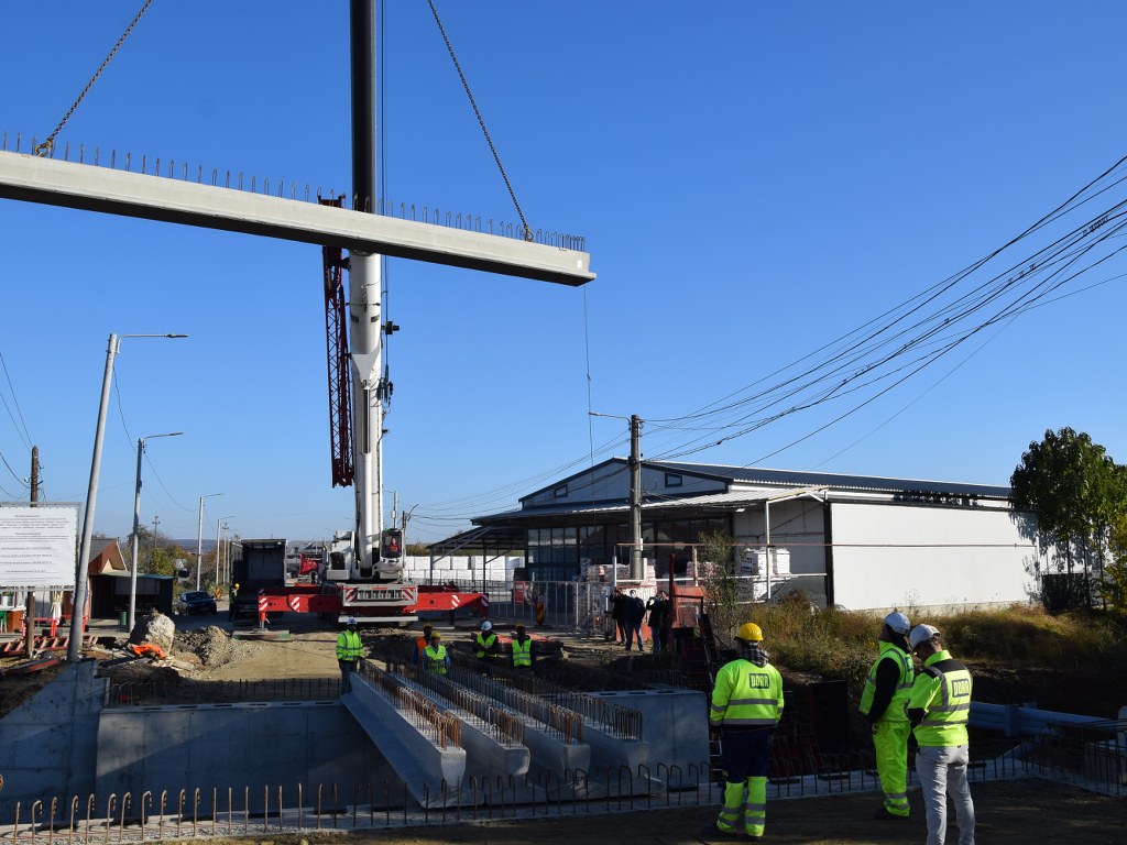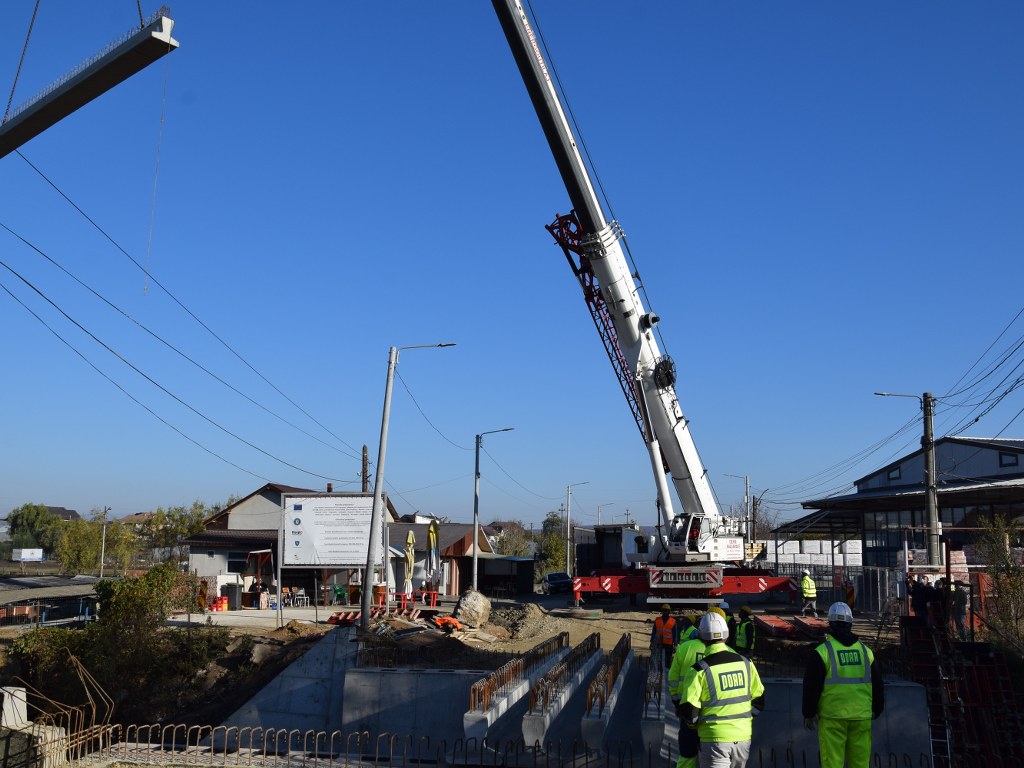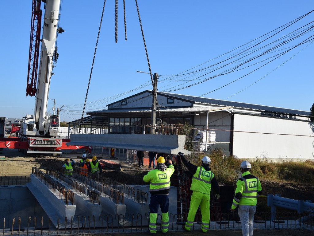 Astăzi au demarat lucrările de montare a grinzilor principale la podul peste pârâul Racovița, din comuna Băleni. Mobilizarea de șantier este bună, iar activitatea se desfășoară conform graficelor convenite cu constructorul.