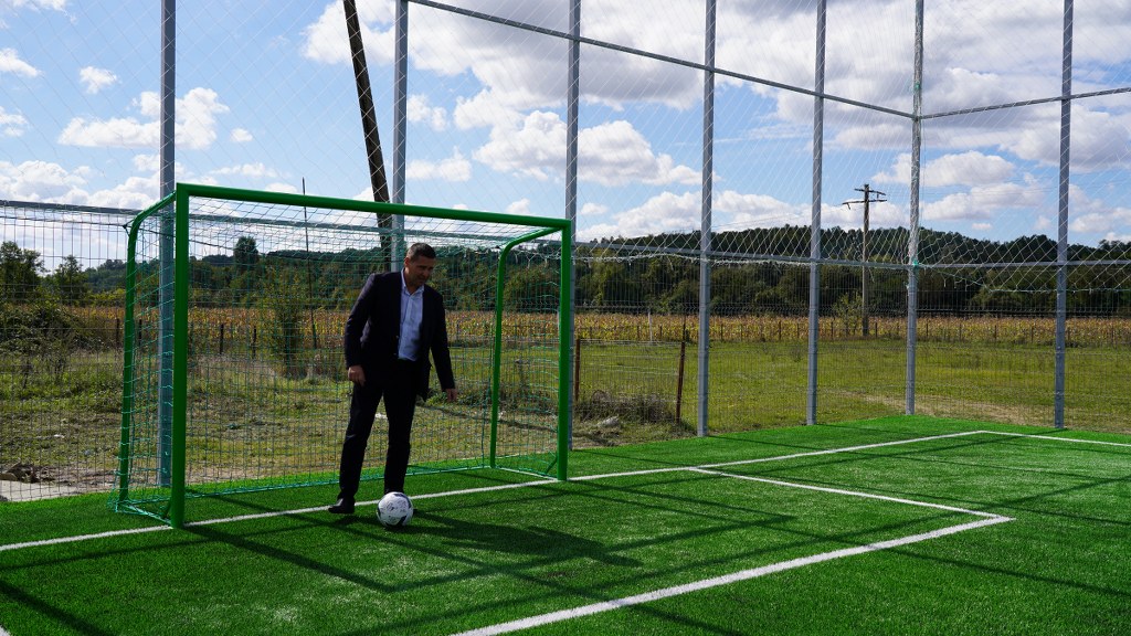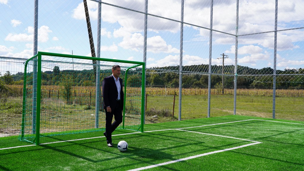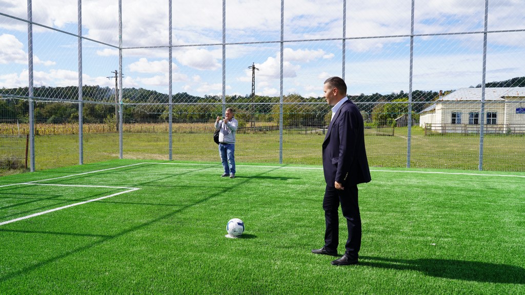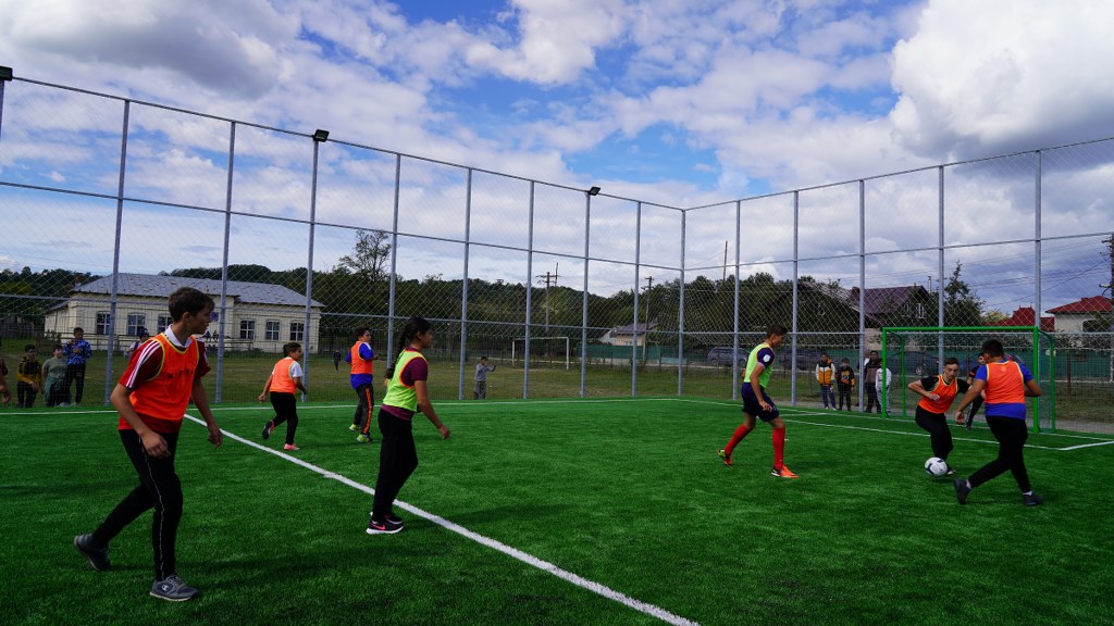 Construcția terenului de sport a fost realizată în vara acestui an.