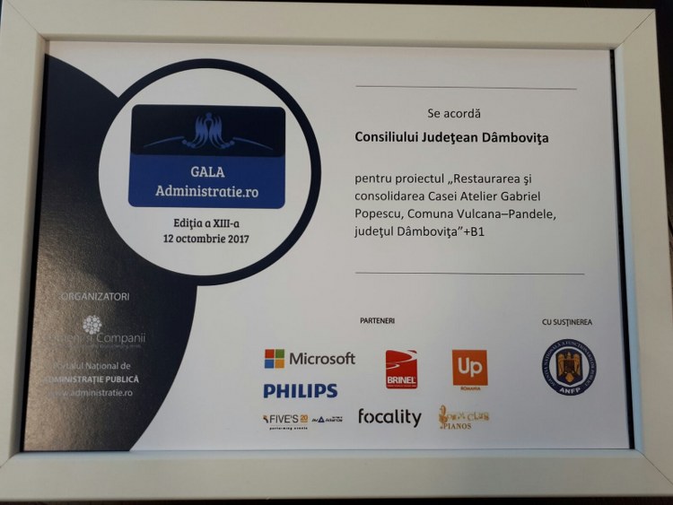 Pentru al treilea an consecutiv, Consiliul Județean Dâmbovița a fost premiat în cadrul Galei Premiilor de Excelență în Administrație