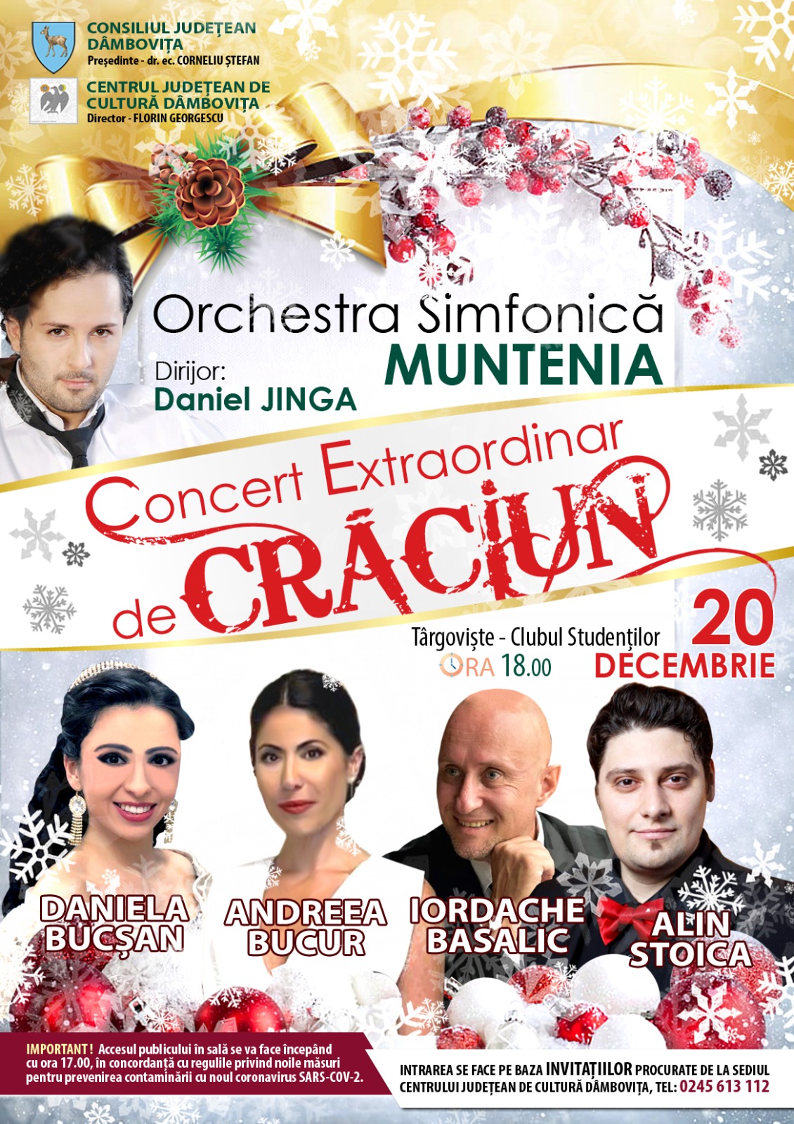 Accesul publicului se va face pe baza invitației care poate fi ridicată de la sediul Centrului Județean de Cultură Dâmbovița, începând de astăzi, 15 decembrie 2021.