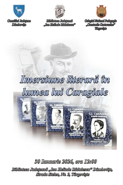 Vineri, 30 ianuarie 2026orele 12.00, Biblioteca Judeţeană „Ion Heliade Rădulescu” Dâmboviţa, în parteneriat cu Colegiul Naţional Pedagogic „Constantin Cantacuzino” din Târgovişte, organizează „Imersiune literară în lumea lui Caragiale” – program dedicat personalității marelui dramaturg.