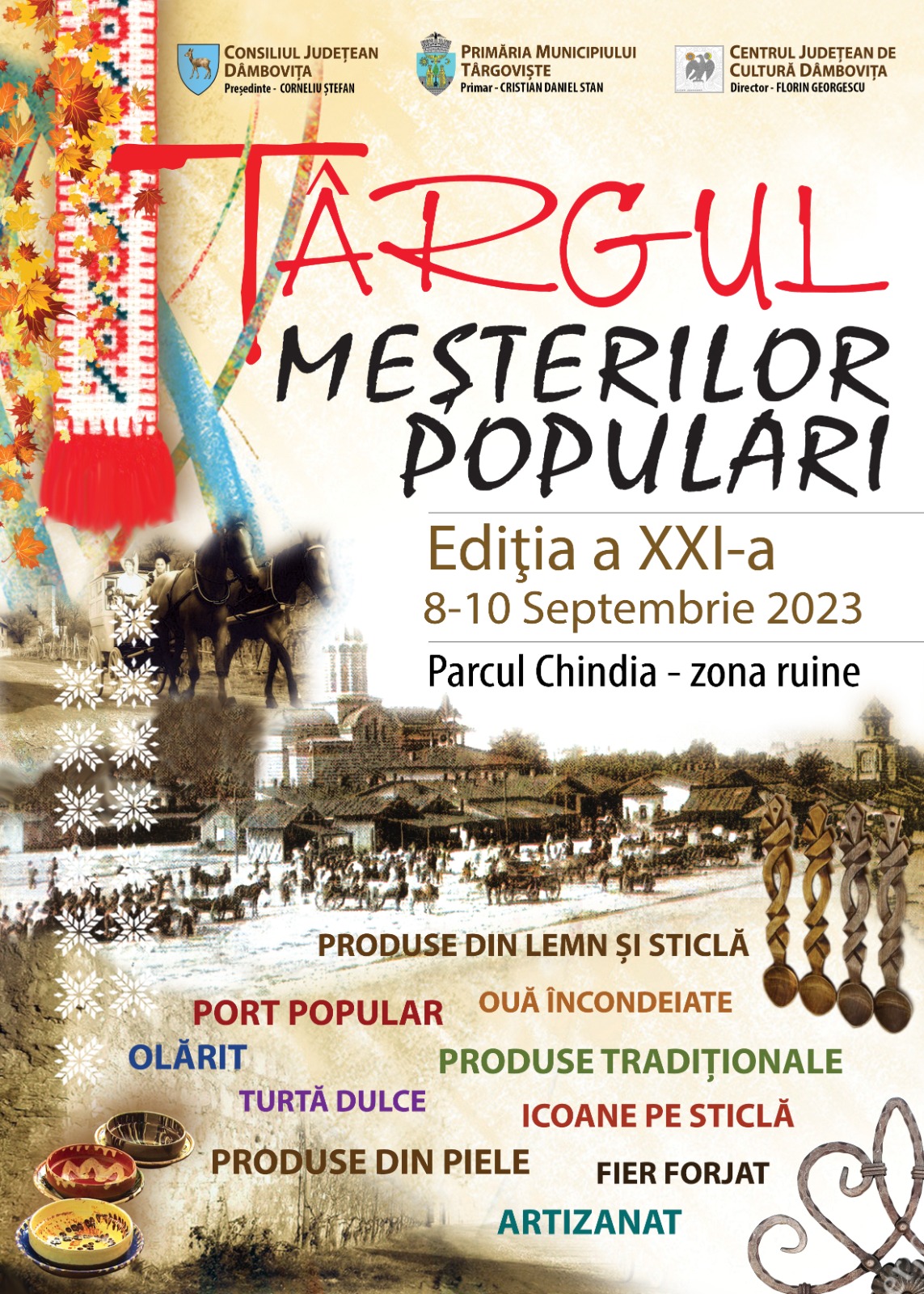 În cadrul amplelor manifestări ce fac parte din sărbătoarea „Zilele Cetății”, în perioada 8-10 septembrie 2023, Parcul Chindia din Târgoviște va găzdui cea de-a XXI-a ediție a Târgului Meșterilor Populari, eveniment organizat de către Consiliul Județean Dâmbovița, prin Centrul Județean de Cultură, în parteneriat cu Primăria Municipiului Târgoviște.