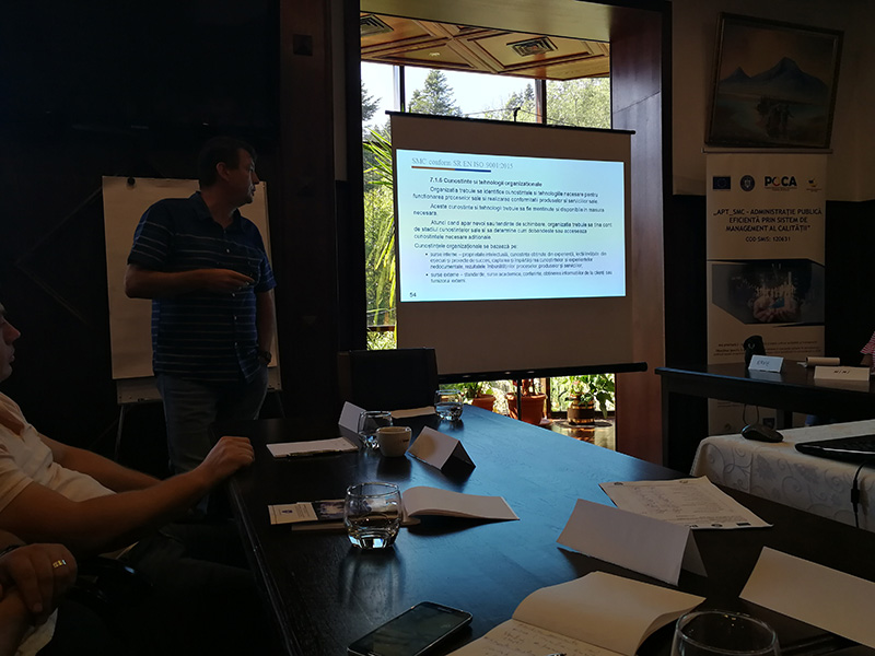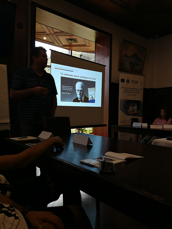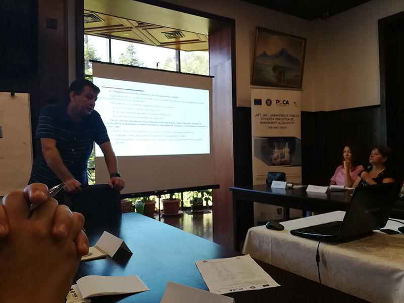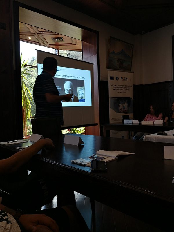 Acest eveniment va fi găzduit la Hotel Rina, Sinaia cu participarea celor 22 de persoane, având calitatea de manageri (6), auditori (6) și specialiști în calitate (10), instruiți în cadrul proiectului.